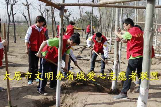 2014年3月29日,丽日当空,春风拂面,开云官网团委青年志愿者协会的学生在滨河西路南延南瓦窑开展了义务植树活动。