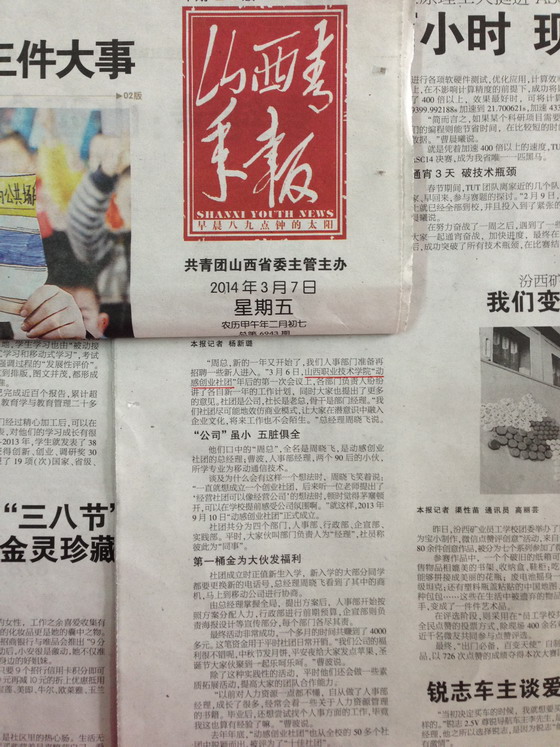 2014年3月,山西青年报记者慕名而来,针对该社团企业化经营进行了专访,并在山西青年报20140307期报道了感创业协会的创新做法。