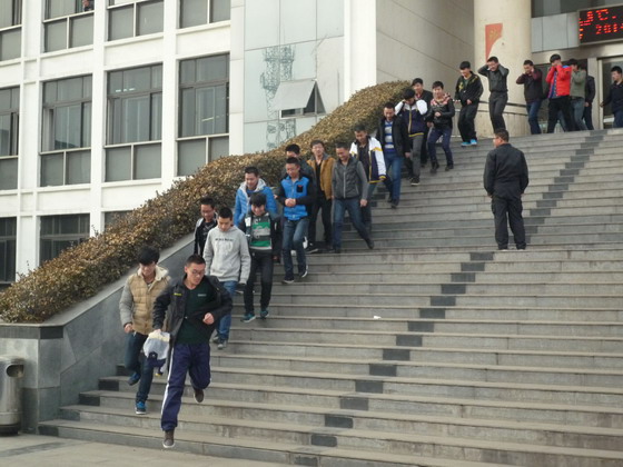 为更进一步提高学院安全能力建设,加强学院安全教育,以及增强学生们的安全意识,提升学校应对突发事件的能力,确保广大师生健康和生命安全,机械工程学院在2014年2月27日下午举办了消防地震逃生演练,通过此次演练使全体师生更加熟悉学校制定的地震、消防安全预案,掌握基本的逃生技能。