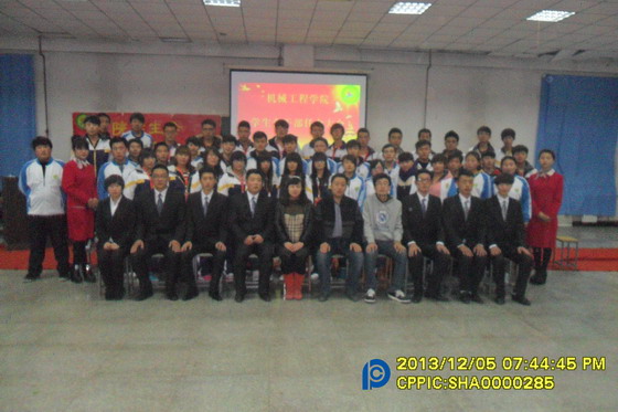 米昂书记在会上宣布了机械工程学院13届学生会干部名单。任命魏天峰为学生会主席,刘帅为学生会副主席,任命李江涛、薛劢超等7名同学为新一届主席团成员。任命郝月霞,李俊国等7名同学分别担任学生会各部部长。