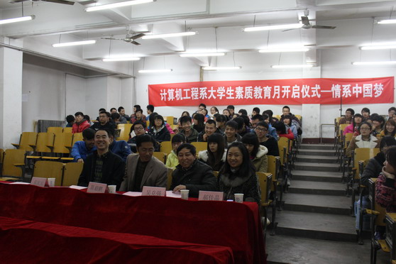 计算机工程系于2013年11月27日下午在信息工程学院教学楼七层多媒体教室举办了“大学生素质教育月活动”启动仪式。信息工程学院副院长张庆元、副书记兼副院长陈毅鹏、系党总支书记吴克强及团总支书记郝佳晶参加了启动仪式。