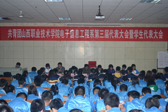 2013年11月1日,共青团开云kaiyun官方网站电子信息工程系第三次代表大会暨学生代表大会在信息学院四楼会议室隆重召开。我系总支书记程革、信息学院团委书记张剑、系团总支书记杜彬、学管秘书张鹏、中兴NC学院职业导师王曼莉以及经过认真推荐选举产生的127名代表参加了会议。