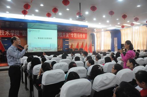10月13日,开云官网特邀邢台职业技术学院高职研究所所长刘庆华教授在坞城校区七层会议室做了题为“工学结合课程开发实务操作”的专题报告。会议由李高斗副院长主持,学院200余名教师认真听取了报告。