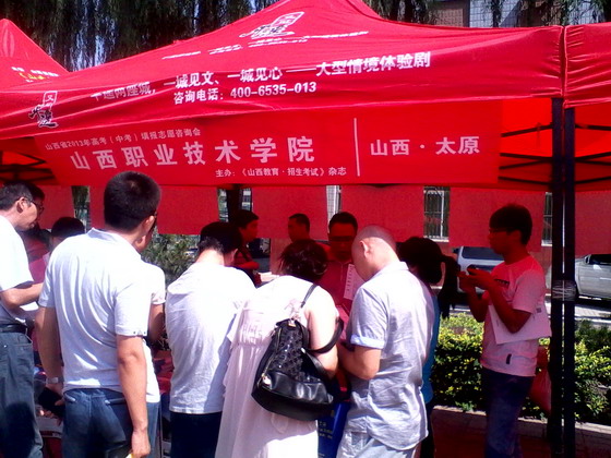 为了使广大考生与家长更全面、直接地了解开云官网的招生专业、办学优势及特色,我部门吴鹏、逯文鼎两位老师于7月20日至25日参加了“山西省2013年全国普通高校招生咨询会”(第二轮)的太原场、长治场、晋城场、临汾场及运城场五个场次的招生咨询会。本次高校咨询会由《山西教育》举办,太原场在山西工程职业技术学院举行、长治场在山西机电职业技术学院、晋城场在晋城职业技术学院、临汾场在山西师范大学临汾学院、运城场在运城职业技术学院举办。在本轮的咨询会上,我部门老师共计接待家长及考生咨询五千余次,发放宣传资料一万余份,收到了预期效果。