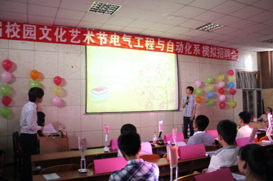 为了培养大学生责任意识和社会竞争意识,树立正确的就业思想,为大学生的成功就业做思想指导。5月31日下午,电气工程与自动化系在信息工程学院实训楼四楼阶梯教室组织举办了山职版职来职往模拟招聘会。