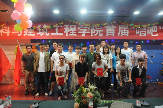 台上选手们倾情演绎歌曲,台下观众掌声迭起,各位评委认真评分,经过激烈争夺,建工系王进、李帅同学获得了第一名。材料与建筑工程学院领导发表了激情昂扬的讲话,比赛最终获得圆满结束。