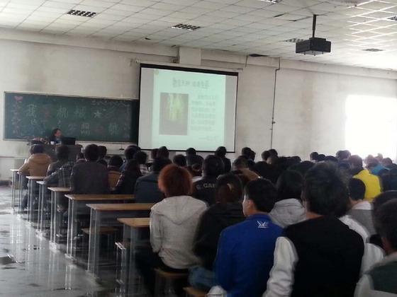 机械系全体学生及班主任共同聆听了傅老师的精彩演讲。傅老师用生动的语言,有趣的图片和励志类的视频,帮助大家更好地了解自己,发掘出更大的潜能,为家庭和社会尽自己的一份力。精彩生动的讲座现场多次赢得热烈的掌声。会后,学生们纷纷表示受益匪浅。