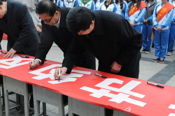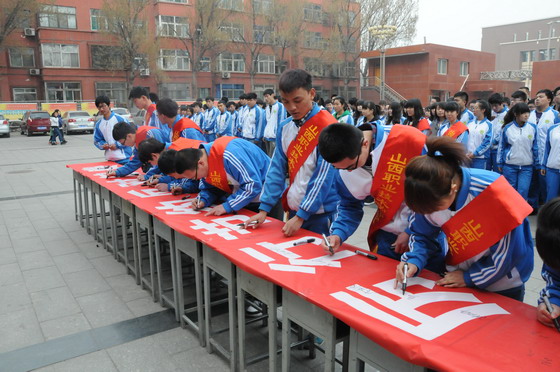 学生代表也向全体同学发出了倡议,号召大家一起营造健康、文明、节约、和谐的校园环境。仪式正式启动后,所有领导、老师、学生代表在“厉行节约 反对浪费”的条幅上共同签名。仪式后,各位领导还一同巡视了学生食堂,对今后的工作提出了建议。