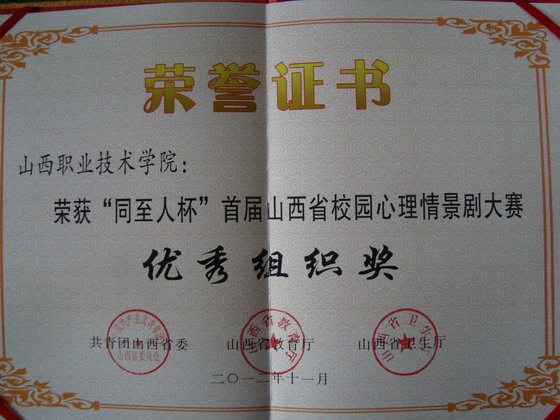 在团省委、省教育厅、省卫生厅主办的山西省首届校园心理情景剧大赛上,开云官网团委精心编排的情景喜剧《虚荣的心》荣获了优秀组织奖。