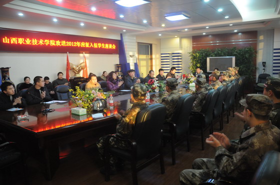 12月9日上午,在入伍学生临行前,学生处组织召开了“欢送2012年应征入伍学生”座谈会。学院康同生副院长应邀出席了会议。就业办张志强主任,相关系部书记、班主任老师,张艳慧、贾冬冬等20位入伍学生参加了座谈会。会议由学生处处长宋海宏主持。