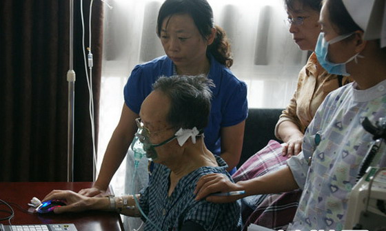 那一天早上,他的病情急剧恶化。上午,他要求、请求甚至哀求,想尽各种办法下床工作,两个小时里,他求了9次。不忍心他最后一个愿望都不被满足,他终于被放下地。半小时过去,他的手颤得握不住鼠标,也渐渐看不清,几次问女儿眼镜在哪,女儿说,眼镜戴着呢。这时候,很多人已经忍不住跑出去痛哭起来,怕他听到,还要使劲捂着嘴巴呜呜地哭。