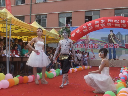 为富学生课余生活,提高学生参加文化活动的积极性,建筑装饰系于6月1日在西区操场举办了首届“新丝路”服装创意秀,并取得圆满成功。