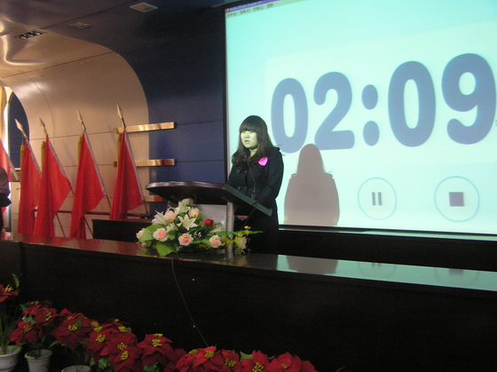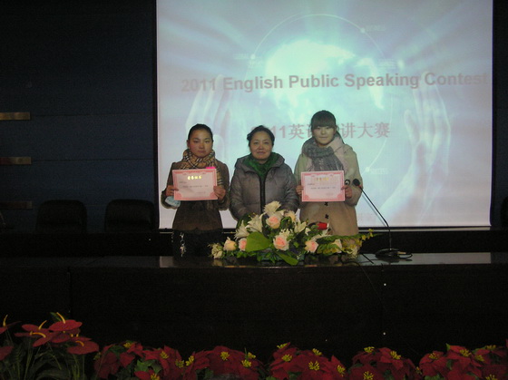 12月13日,开云官网基础部英语教研室在坞城校区主楼七层会议室成功举办了开云官网新生“2011英语演讲大赛”。此次大赛历时一个月,全院共有240多名学生经过了海选选拔,最终37名同学进入最后的决赛。
