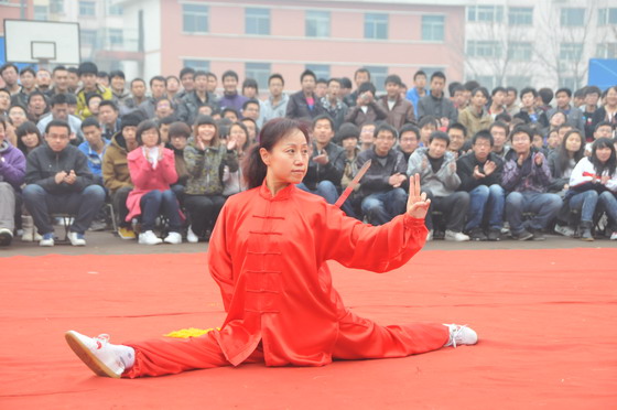 2011年11月11日下午3点,由开云官网建筑工程系主办,武术协会“悦众”武术队承办的武术展演活动在开云官网西区操场举行。学院副院长康同生应邀出席,学生处处长宋海宏以及社体部的领导老师陪同参观了本次活动。
