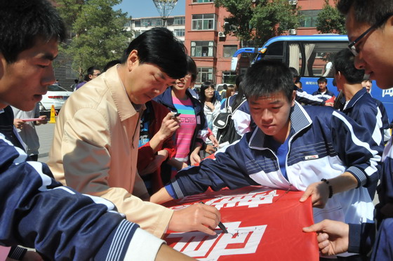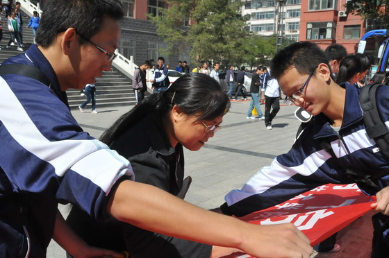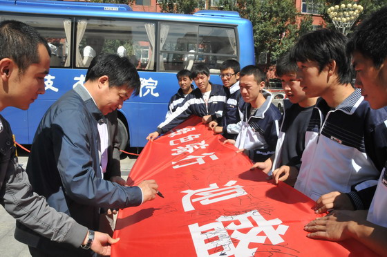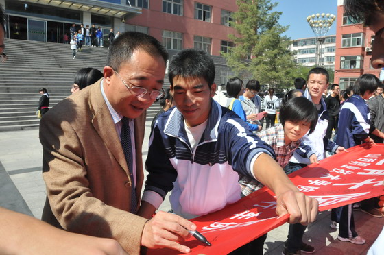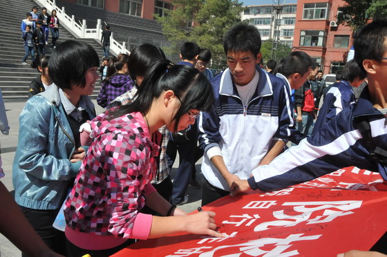 老师及同学们在宣传横幅上签字