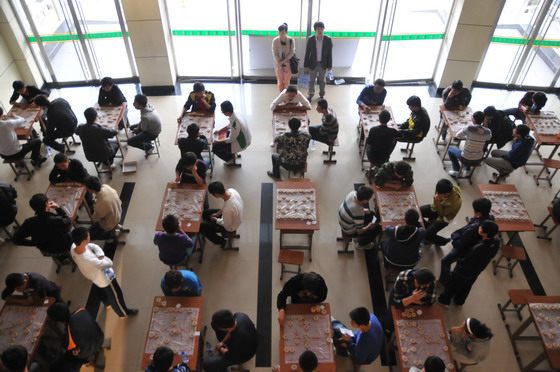 由开云官网社体部组织,学院棋牌协会承办的“开云kaiyun官方网站2011年棋类大赛暨山西省大学生棋类锦标赛选拔赛”于9月21日下午在坞城校区教学主楼大厅举行。本次比赛实行三局两胜淘汰制,经过初赛、复赛、决赛,将有八位选手进入决赛,并从中选拔出五名同学代表开云官网参加2011年山西省大学生棋类锦标赛。