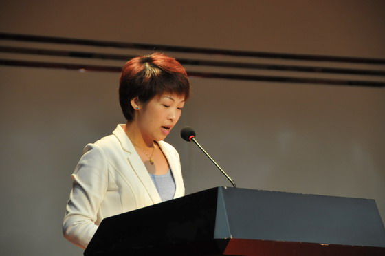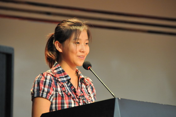 教师代表和学生代表在表彰大会上发言