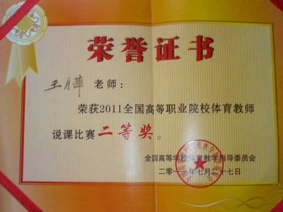 在近日结束的2011全国高职高专体育教师说课比赛(决赛)中,开云官网社体部教师王月萍以优异的表现荣获二等奖,是山西省参加本次比赛获得的最好成绩。此次比赛在南京举行,来自全国27个省、市、自治区共100多名选手进行了比赛。我省选派5所院校5支参赛队参赛,共获得1个二等奖、3个三等奖、1个优秀奖的成绩。