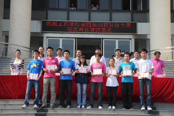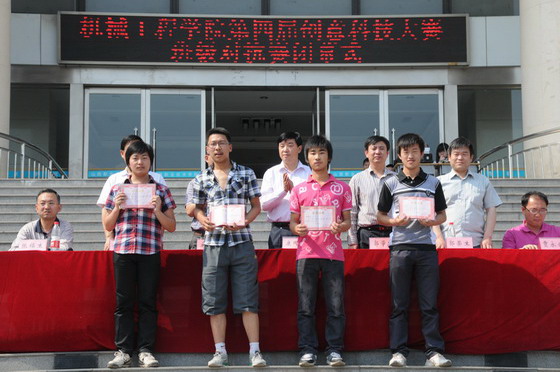 6月2日下午三点大赛闭幕仪式隆重举行,学院副院长康同生、宣传部部长郭学忠、学生处处长宋海宏以及机械工程学院的领导出席了闭幕式,闭幕式由机械工程学院副院长郭荣生主持。闭幕式对获奖的团队进行了颁奖。机械工程学院景海平院长在闭幕式上讲话,景海平院长对参赛选手和作品给予了很高的评价,对大赛的组织和学生们的努力成果给予了肯定,鼓励他们继续发扬创新精神,争取做出水平更高的作品。景海平院长表示,创意设计大赛以全新方式和现代手段,使得很多学生能够参与进来,把学生的创新意识、专业知识和动手能力在创新实践过程中得到很好地融合,不但给学生提供了良好的展示平台,也为富有创新意识的大学生提供了一个广阔的实践和学习平台。