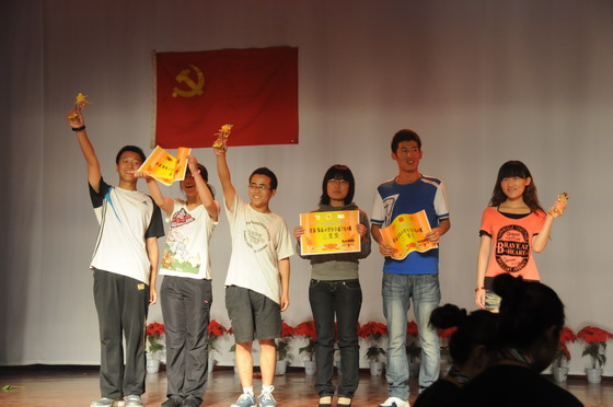 宣传部部长郭学忠,学生处处长、团委书记宋海宏为获得二等奖的选手代表颁奖