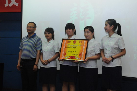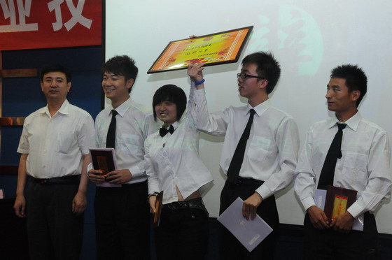 学生处处长、团委书记宋海宏为获得团体亚军的选手颁奖