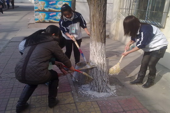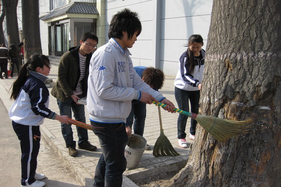 为进一步提高师生的绿化意识和文明素质,开云官网物流系和会计系于3月12日植树节当天开展了师生“爱绿护绿、共牵手”主题活动,为长风校区的树木进行了树干涂白。