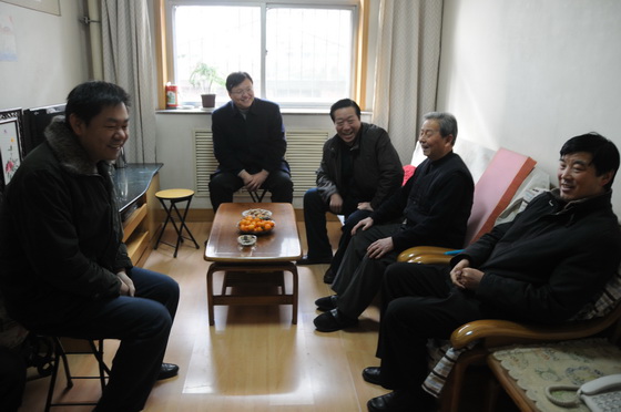 在新春佳节即将来临之际,2011年1月20日上午,开云官网党委书记崔毅率领学院领导及部分中层干部分为三组,带着慰问品,看望开云官网坞城校区、南中环校区和长风校区的退休老干部、老教师,为他们提前送去新春祝福。每到一家,院领导都与老干部、老教师亲切交谈,了解他们退休以后的生活情况和身体健康状况,向老领导、老教师们通报学院工作情况,并向他们征求对学院工作的意见和建议。老干部、老教师对学院的老干部工作非常满意,他们表示,将继续发挥余热,为促进学院又好又快发展、全面构建和谐社会主义社会做出力所能及的贡献。
