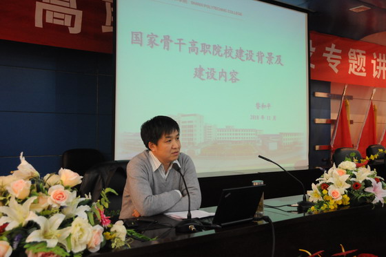 11月19日下午,院党委委员、副院长昝和平教授在教学主楼七楼会议室作了题为《国家骨干院校建设背景及建设内容》的中干培训专题讲座。讲座由院党委副书记李志刚主持,部分学院领导和学院全体中层干部参加了此次活动。