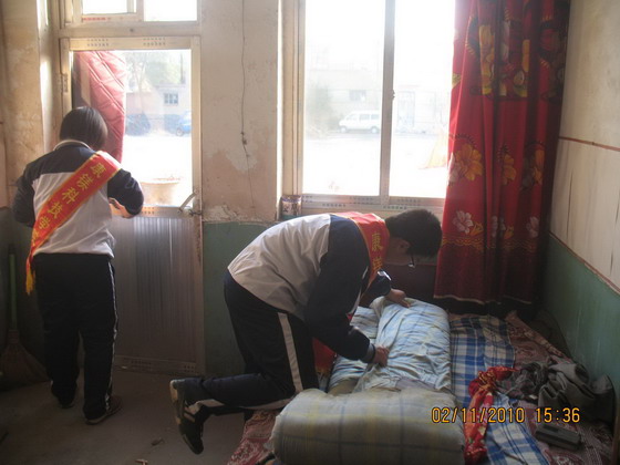 同学们徒步来到了王答乡敬老院。在老师的指导下,志愿者们不怕脏、不怕累帮老人擦桌子、扫地、擦玻璃。志愿者把每个孤寡老人的屋子都收拾得干净整洁,玻璃也擦得分外明亮。劳动结束后,同学们陪老人们一起晒太阳、拉家常,给老人剪指甲、洗脸。许多老人拉着志愿者的手流下了感动的眼泪。