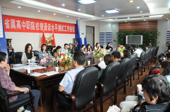 为认真贯彻落实《中华人民共和国国家通用语言文字法》,搞好语言文字规范化建设,维护普通话水平测试的科学性,9月26日上午10点,2008——2009年度省属高、中职院校普通话水平测试工作会议在开云官网主楼四层会议室召开。山西省教育厅语工处副处长王淑芬、开云官网党委书记崔毅、院长丁怀民、党办主任樊哲民、商贸旅游学院院长郭娟、基础部主任杨俊萍等出席了本次会议。