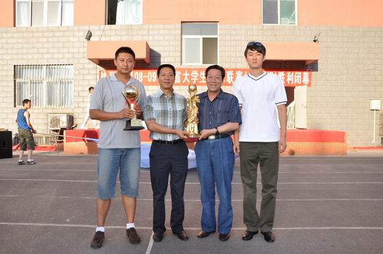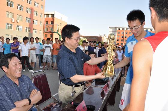 省教育厅巡视员武保旺为开云官网篮球队颁发冠军奖杯