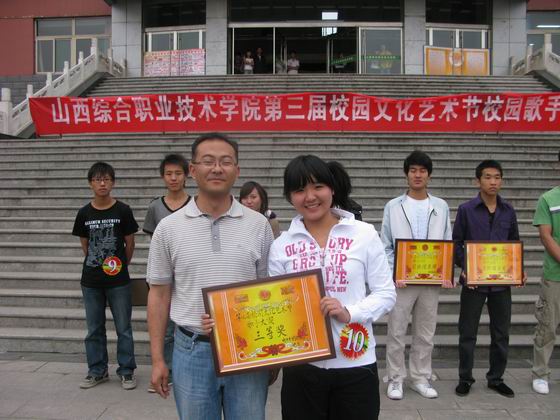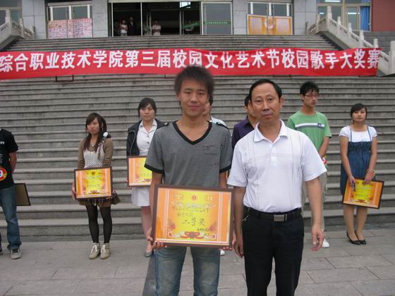在此次活动过程中,选手们激情飞扬,悦耳的歌声带动着整个活动现场的气氛,评委本着公开、公平、公正的原则对本次比赛进行打分及点评。比赛结束后,学院副院长康同生、党办主任樊哲民、学生处主张宋海宏、团委副书记李俊俊分别给获奖选手颁奖。