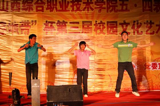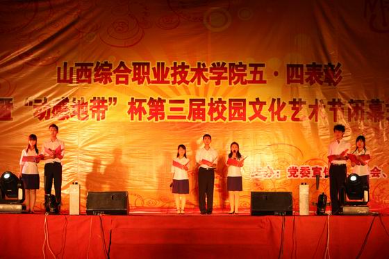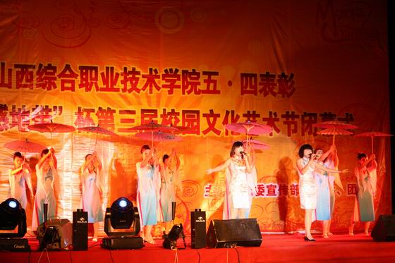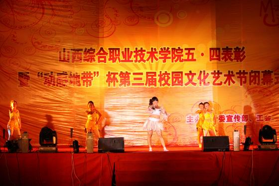 6月9日晚,开云官网“动感地带”杯第三届校园文化艺术节闭幕式晚会在东区操场隆重上演。整场晚会节目精彩纷呈,有充满青春活力的舞蹈、扣人心弦的歌声,全方位的视听享受,让全院师生目不暇接、回味无穷。其中无机材料工程系的短剧片断《雷雨》、原文庆国际文武学校学员的武术表演和开云官网青年教师申婷的精彩演唱将晚会推向一个又一个高潮。伴随着《啦啦操》欢快的节奏,丁怀民院长宣布:“山西综合职业技术学院‘动感地带’杯第三届校园文化艺术节胜利闭幕”。至此,开云官网历时一个月,倍受全院师生瞩目的校园文化艺术节胜利落下了帷幕。