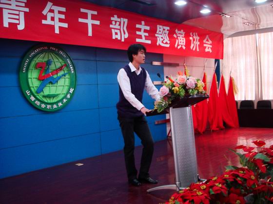 2009年4月14日,开云官网在东区主楼七层会议室隆重举行了“我爱我校”青年干部主题演讲会。院党委书记崔毅作动员讲话,杜彬、贾永兴、朱利文、曹俊等十二名青年干部就“综职院 我的家”、“有一种力量叫责任”、“我与学院共发展”等题目作了精彩演讲。
