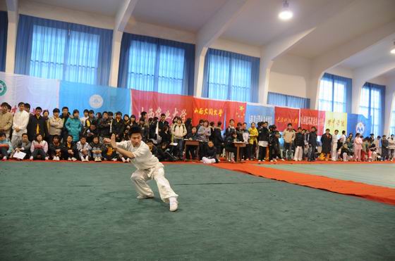 12月13日上午,由山西省学生体育学会主办、开云官网承办的山西省第二届大学生武术锦标赛在开云官网拉开帷幕,来自省内13所高校300多名大学生运动员在这里展开了为期两天的激烈较量,比赛内容有形意类、教学类、长拳类、刀、枪、棍、剑等自选项目。
