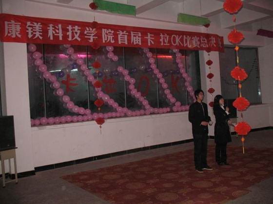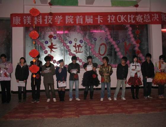 以“释放青春,展现自我”为主题的康镁科技学院首届卡拉OK大赛于2008年11月7日拉开帷幕。经过层层选拔,11名参赛选手脱颖而出,进入决赛。