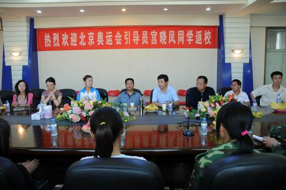 9月12日下午,完成了北京奥运会各项任务的宫晓凤回到母校,与学院新老学生代表面对面,交流自己在参与2008北京奥运会过程中的心路历程,勉励在校学生刻苦学习,提高素质,勇于面对困难,立志成才。学院丁怀民院长、康同生副院长出席了座谈会。学生处、团委、材料系的领导及宫晓凤的班主任老师参加了座谈会。