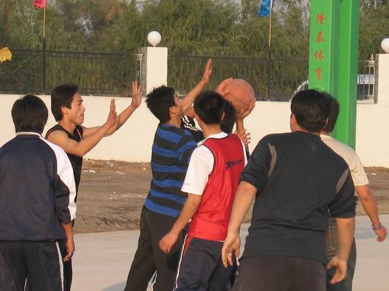 拔河比赛结束后,我们还组织了教工篮球队与学生篮球队的友谊赛,比赛现场紧张激烈,比分交替上升,最后教工队以两分的微弱优势获胜。