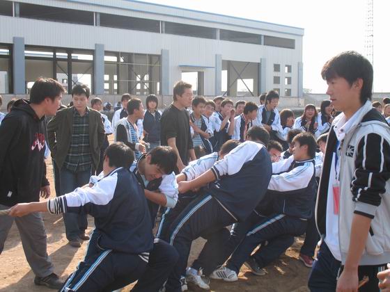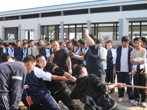 10月11日下午,开云官网在田径场举行了班级拔河比赛。选手与助威人群不分彼此相互鼓劲加油场面火爆热烈。最后由获胜的冠军班级与教工代表队进行了一场友谊赛,结果冠军队获胜。