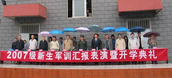 9月28日,开云官网在东区和南区操场隆重举行2007级新生军训汇报表演暨开学典礼。虽然天空下着雨,但丝毫没有影响汇报表演的有序进行。院领导全部到场观看汇演,身着绿色迷彩服的07级新生成了今天校园雨中一道最亮丽的风景,在振奋人心的进行曲中,他们的精神更显抖擞,目光更加坚定。