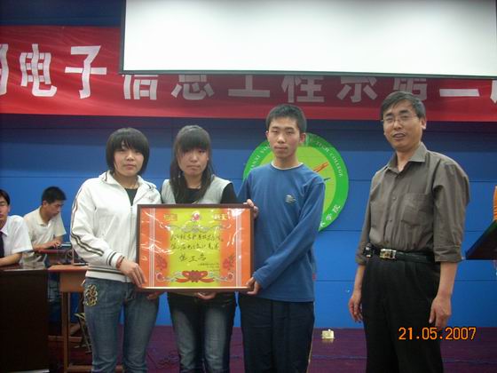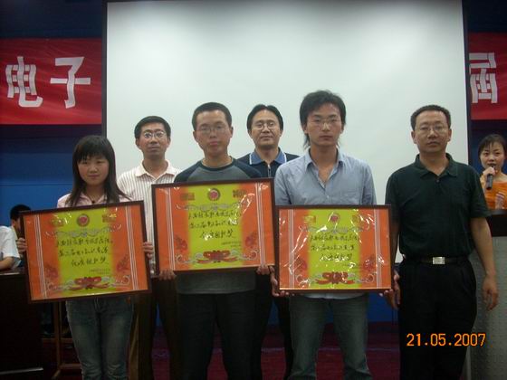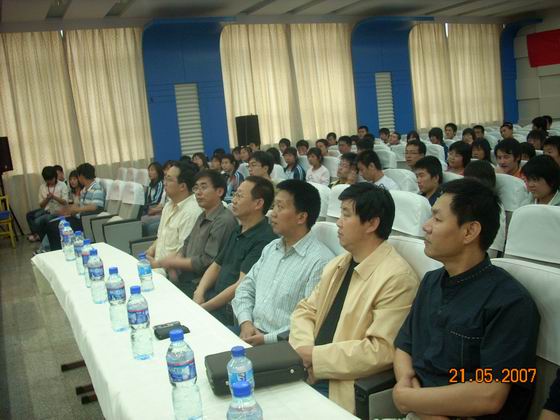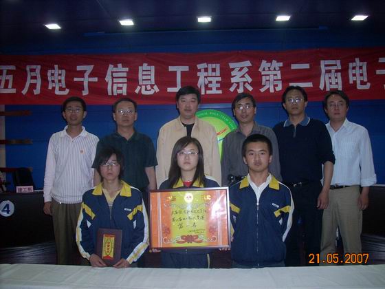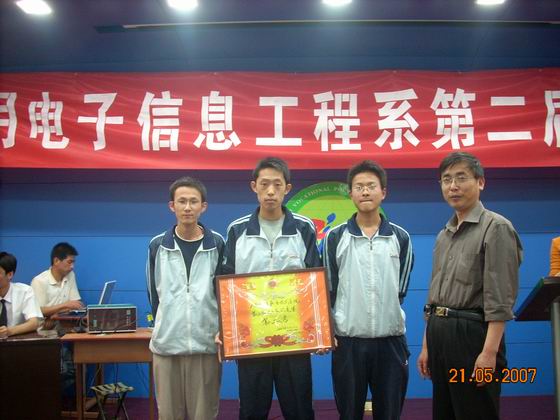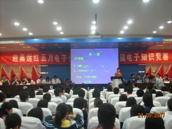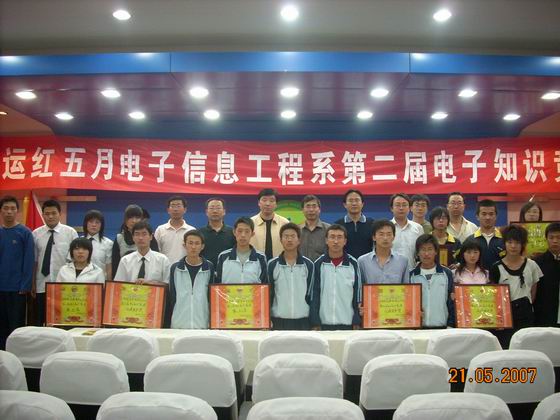 5月21日,开云官网第二届校园文化艺术节“迎奥运红五月”主题电子知识竞赛,在电教教七楼多功能会议厅举行,院长丁怀民、副院长康同生、院办主任徐旭宁和电子信息工程系系领导应邀观看比赛。