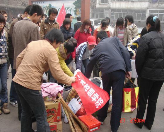 在福利院首先进行了捐赠活动,青年志愿者们把全院师生捐赠的食品和衣物献给了福利院的老人和孩子们,福利院领导表示衷心感谢。