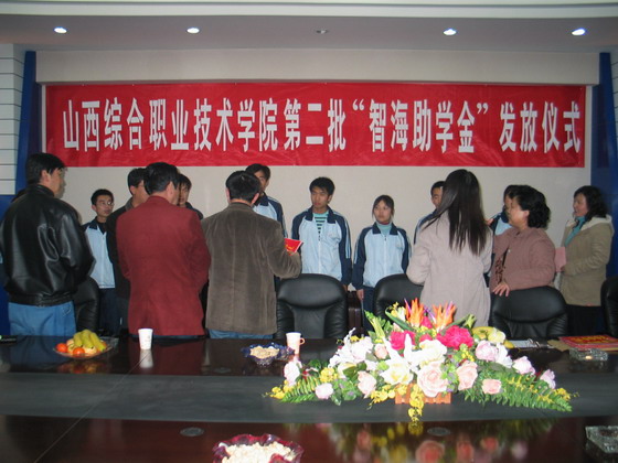 2006年11月29日,开云官网在电教大楼四层会议室举行了第二批“智海助学金”颁发仪式。党委书记崔毅、副院长李高斗、昝和平、康同生、学生处负责人王玉斌及各系部有关人员与智海集团领导参加了发放仪式。