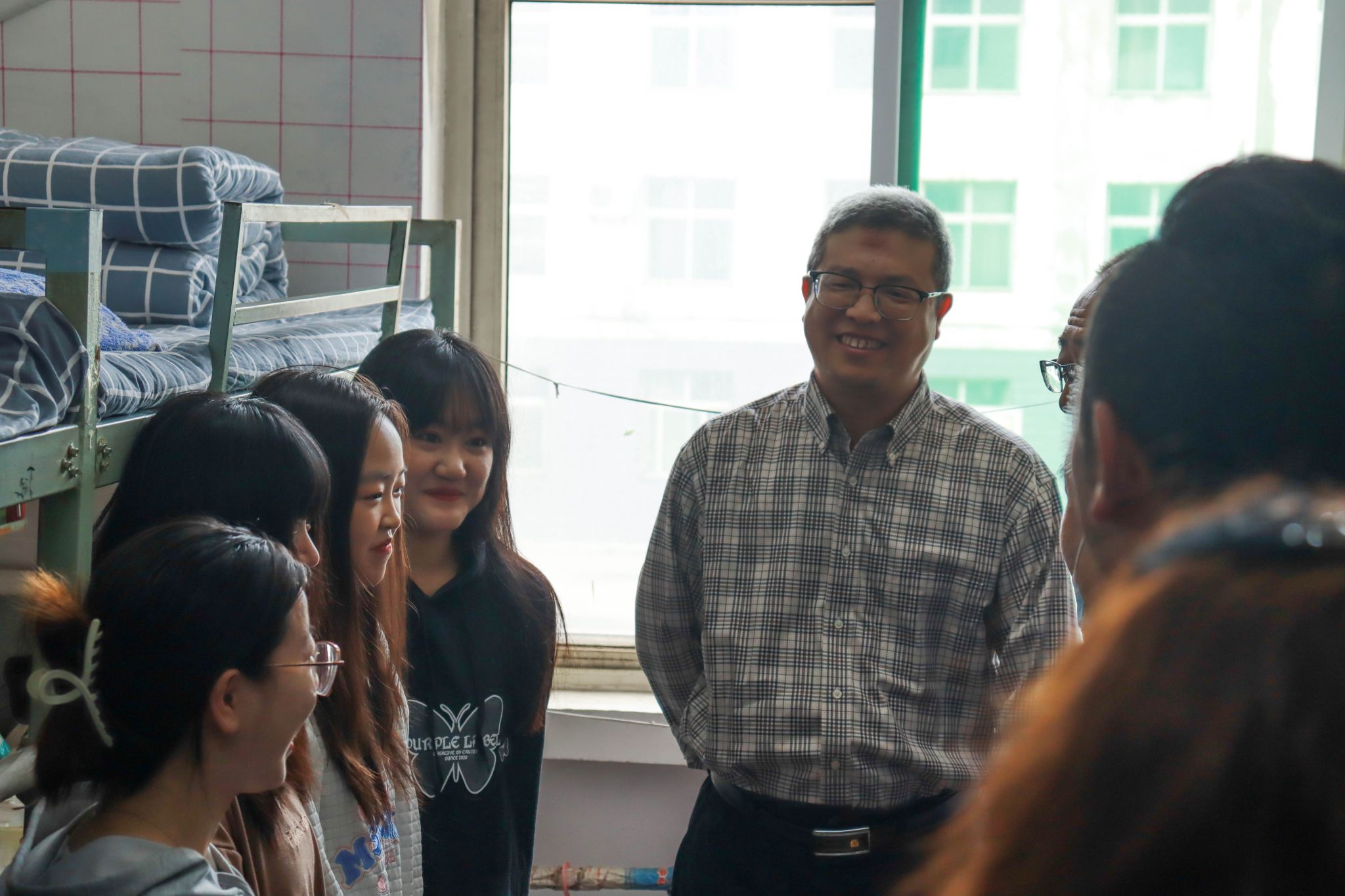9月10日,正逢中秋佳节,学院党委书记雷承锋、院长何秋生、副院长尤陶江、赤新生、李芳等院领导分两组深入学院四校区学生宿舍,看望慰问中秋节在校的学生,与同学们共同欢度中秋,缓解同学们因疫情原因不能与家人共度佳节的思乡之情,并送上节日问候与诚挚祝福,为同学们带来了一份特殊的节日礼物。