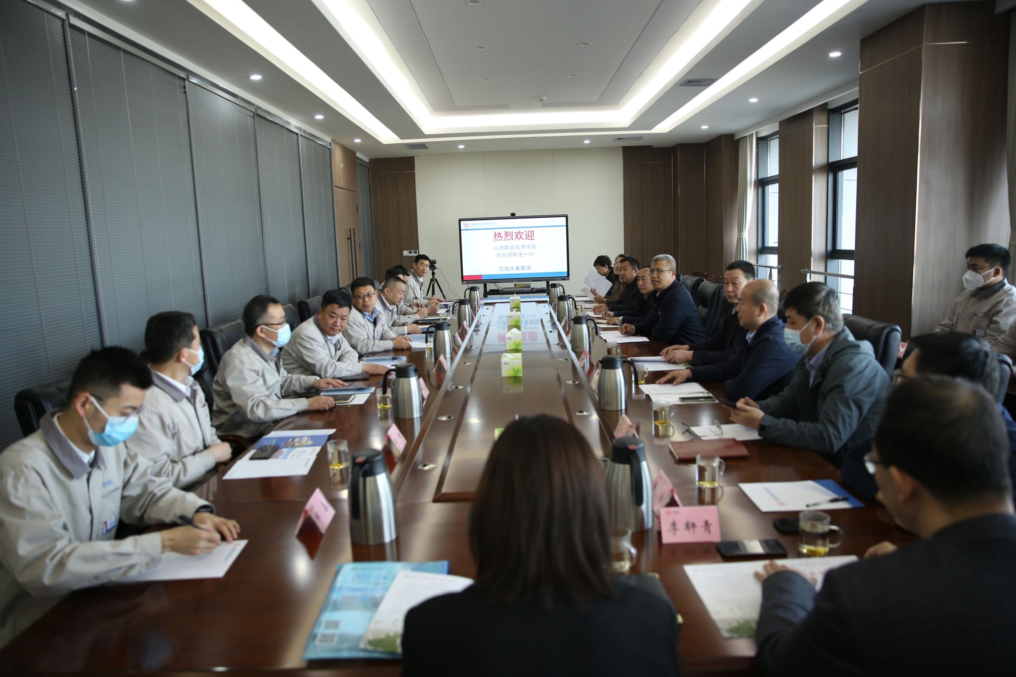 太重集团培训中心、太重工程机械公司、太重集团智能加工配送中心、学院招生就业指导中心、产教融合发展中心、材料环境工程系、机电工程系、车辆工程系、电气自动化工程系等部门负责人陪同参加了对接活动。