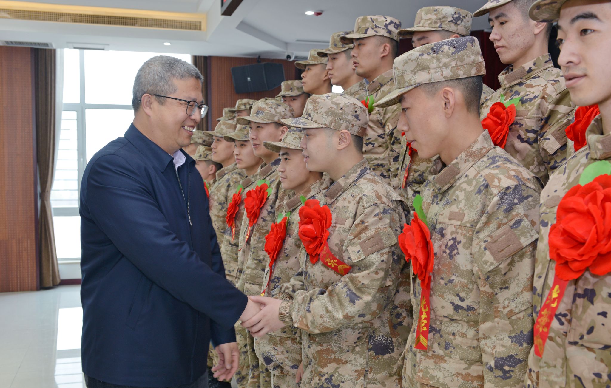 何秋生向入伍学生表示热烈祝贺。他指出,山职院历来就有携笔从戎报效国家的优良传统,在座的同学继承和发扬传统的同时也很好的展现了学院的风采。学院始终高度重视大学生征兵工作,希望同学们坚守初心,进入军营这个大熔炉中历练成长,把部队的好作风传承到今后的学习和工作中。最后他殷切的叮嘱大家在顺利走进军营后,一要志存高远,坚定信念。要把自己的青春梦融入国家的强军梦、强国梦之中,与时代同步伐、与人民共命运;二要严守纪律,服从指挥。要坚决服从党的指挥,严守部队纪律,在艰苦的环境中淬炼自己,尽快成长为一名合格的共和国战士;三要铭记恩情,感恩母校。不要忘记山职院“厚德载物 强能报国”的校训,不要忘记山职院的师长和同学。要感谢师长恩,珍藏母校情。做一个有理想有担当的新时代军人。
