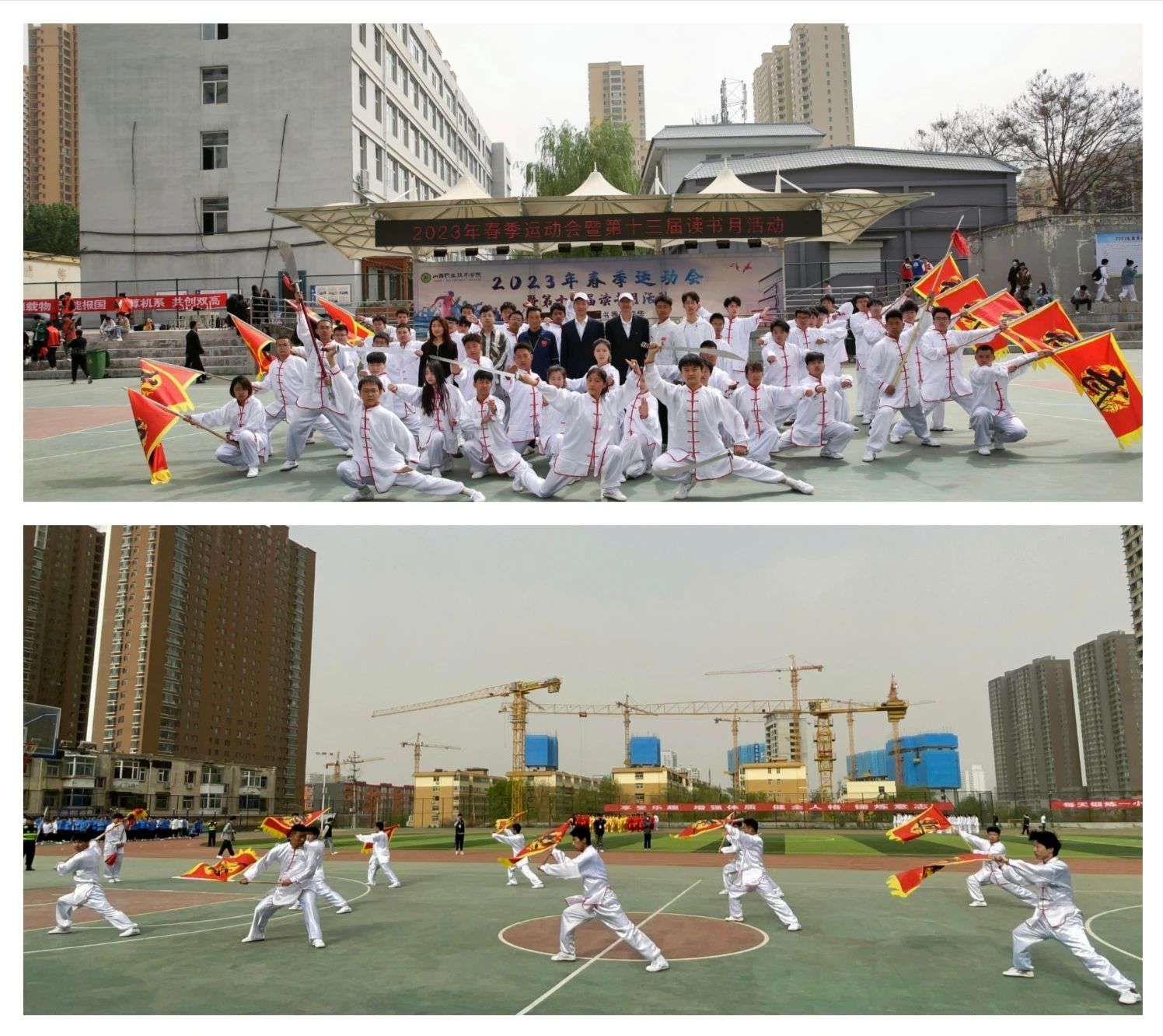 何秋生致开幕辞时指出,学院始终坚持“以人为本、健康第一”的宗旨,通过“体教融合”培养健康自信、顽强拼搏、有活力肯奋斗的技术技能人才,促进校园文化健康发展,培养师生热爱学校、以校为荣的集体荣誉感。学院的男子篮球队16年蝉联CUBA山西省高职组冠军,一座又一座金灿灿的冠军奖杯印证着山西职院的辉煌,展示着山职篮球舍我其谁的霸气和一往无前的勇气!学院的“天行健武术协会”在过去的15年间多次获得团体、单人第一名,并成功申报了“山西省优秀传统文化传承基地——形意拳项目”,这样的胜利来之不易、这样的成绩欣喜骄人,这些都离不开大家的艰辛付出和不懈努力!这也是山西职院人迎难而上、艰苦奋斗的右玉精神的集中体现!