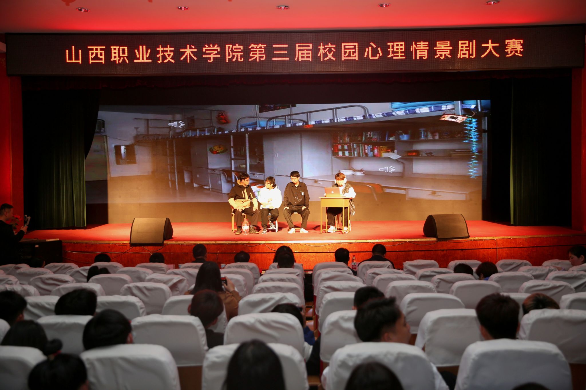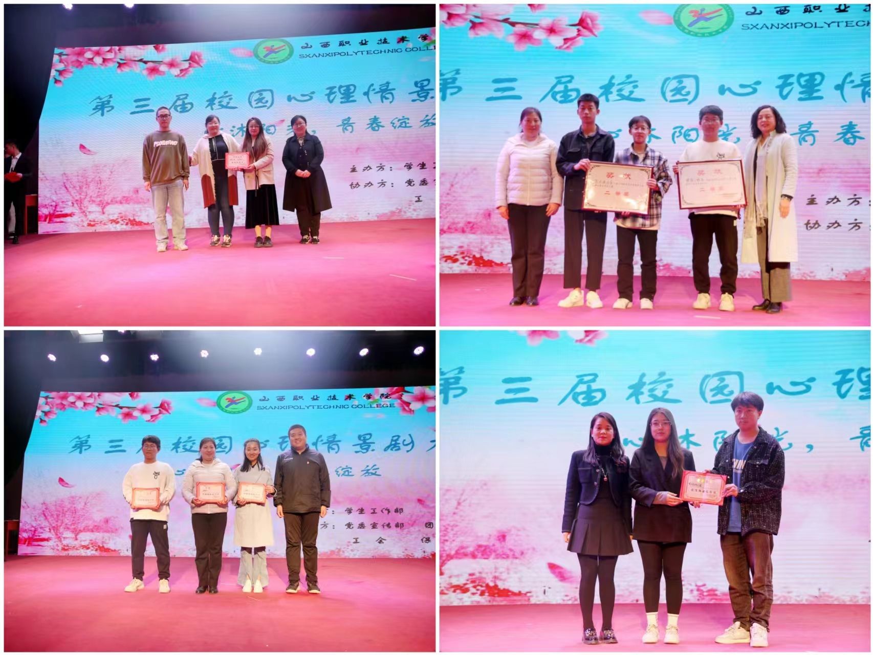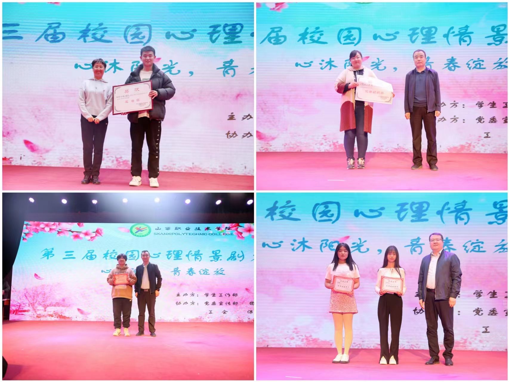 本次活动自从3月启动以来,得到了全院各系部及相关部门的大力支持,经过各系部初赛,最终有11个参赛队伍中脱颖而出进入决赛。决赛现场,11个剧目分别以不同的视角,生动而又深刻地演绎了大学生在自我探索和成长的过程中面临的挑战和蜕变。经过紧张激烈的角逐,最终工商管理系的《破茧》以优异的成绩取得了本次大赛的一等奖。该情景剧主要讲述了一个喜欢画画的高中生,高考考入了一所艺术类职业院校。由于其父亲“望子成龙”的想法和其母亲的教育观念相悖而导致的家庭矛盾,使得男主初入大学后忧心忡忡,在与同学相处时出现了矛盾后,逐渐形成一些心理问题。但他最终突破了心里障碍,完成自我救赎,从而破茧成蝶。