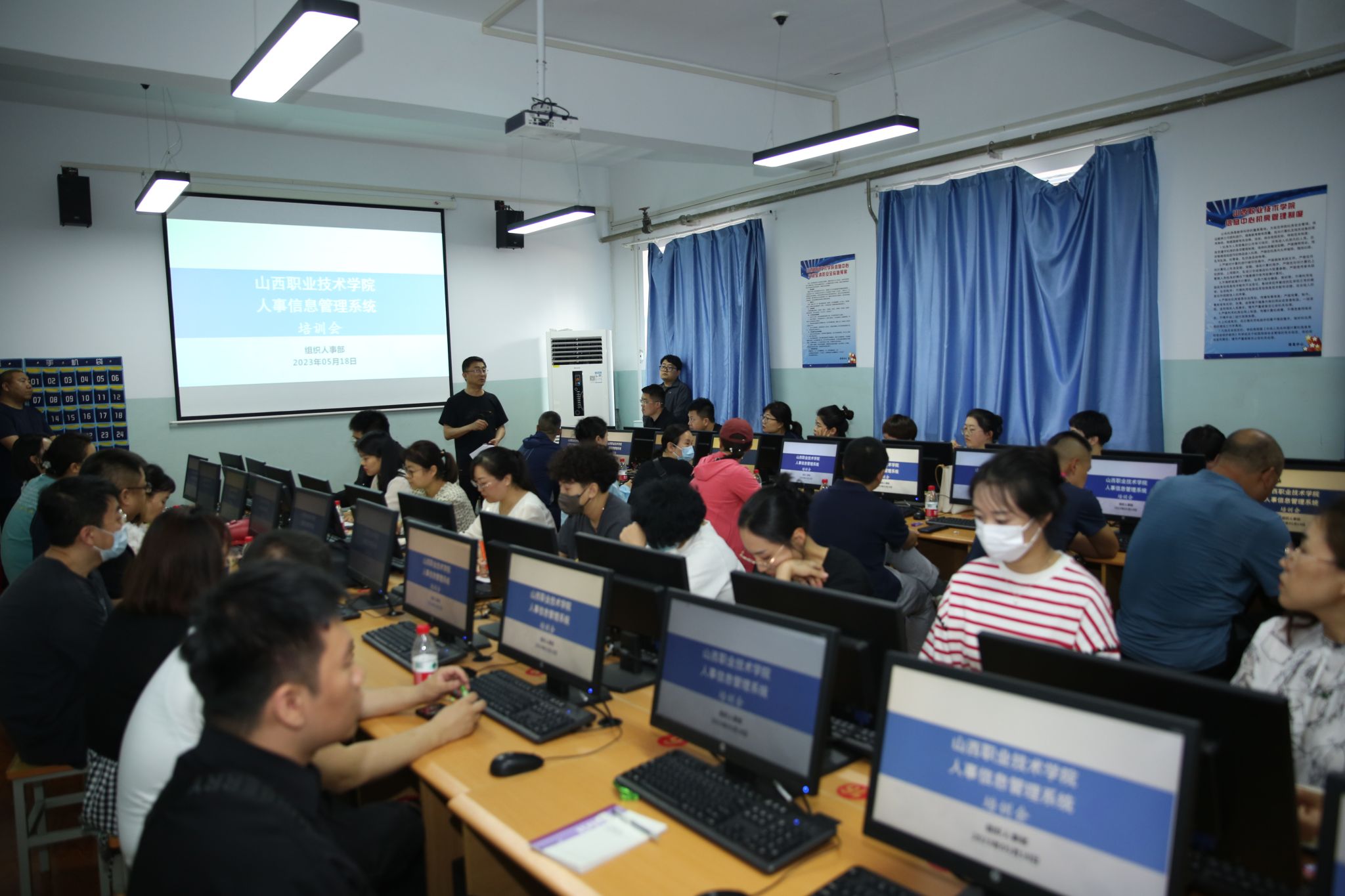 为进一步推进学院信息化建设,切实落实学院智慧校园建设的各项工作要求,5月18日,组织人事部在坞城校区办公楼四层机房开展了人事系统专项学习的集中培训。培训邀请北京宏景世纪软件有限公司实施工程师李军、山西集创科技有限公司项目经理任玉婷、高晨和学院组织人事部部长张武奎作相关报告。各管委会、各系部党政办公室主任、各职能部门人事系统管理员参加了本次培训会议,培训会由学院党委委员、组织人事部部长张武奎主持。