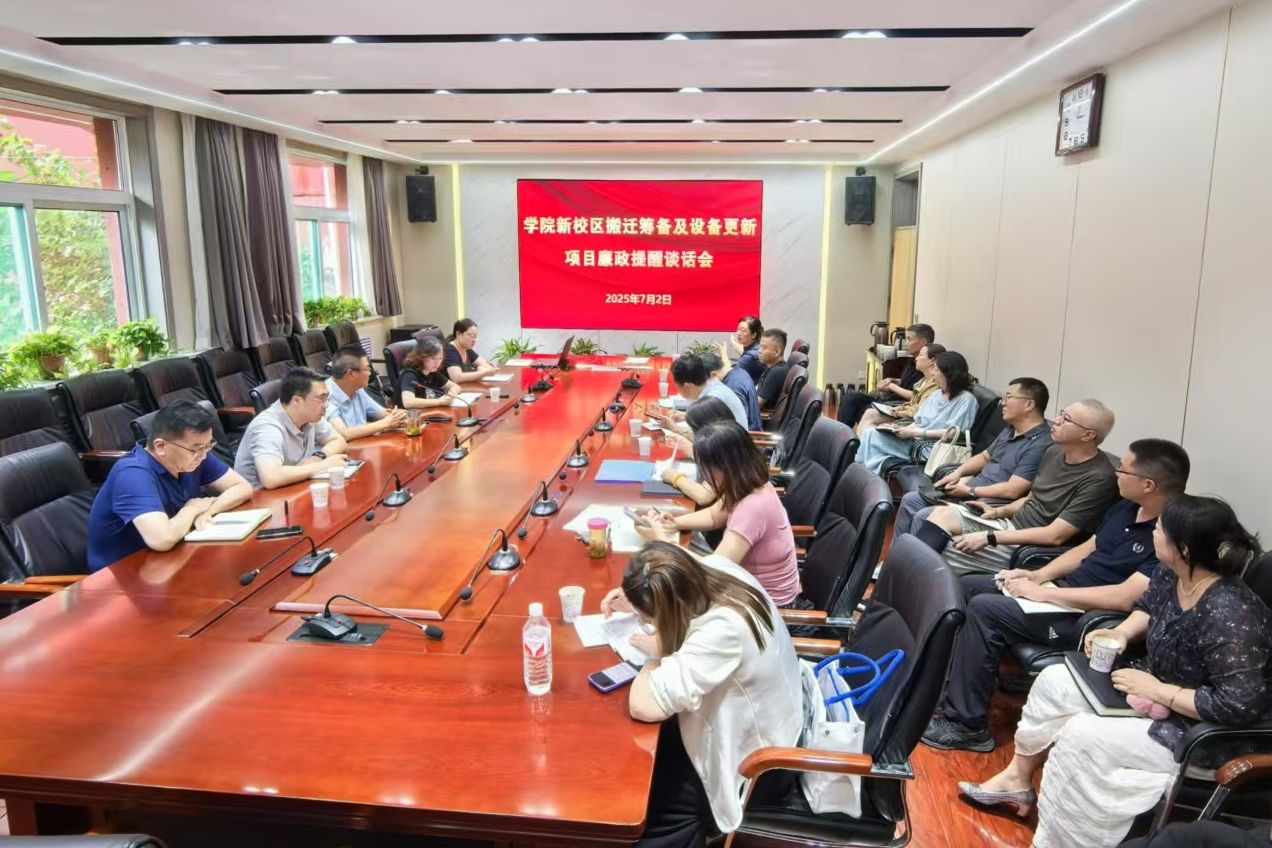为深入贯彻落实全面从严治党要求,把关口前移,将监督挺在前面,筑牢新校区搬迁及设备更新项目廉洁高效推进,7月2日下午,学院纪委在坞城校区办公楼二层会议室召开新校区搬迁筹备及设备更新项目廉政提醒谈话会。国有资产管理中心、质量控制中心负责人和涉及新校区搬迁、设备更新项目的相关系部党政负责同志参加会议,会议由纪委书记牛惠斌主持。